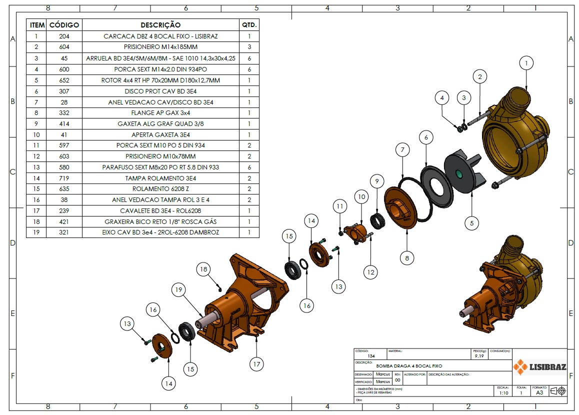 -Conjunto de Bomba fabricada em Ferro Branco Fundido , ferro Nodular e Aço.